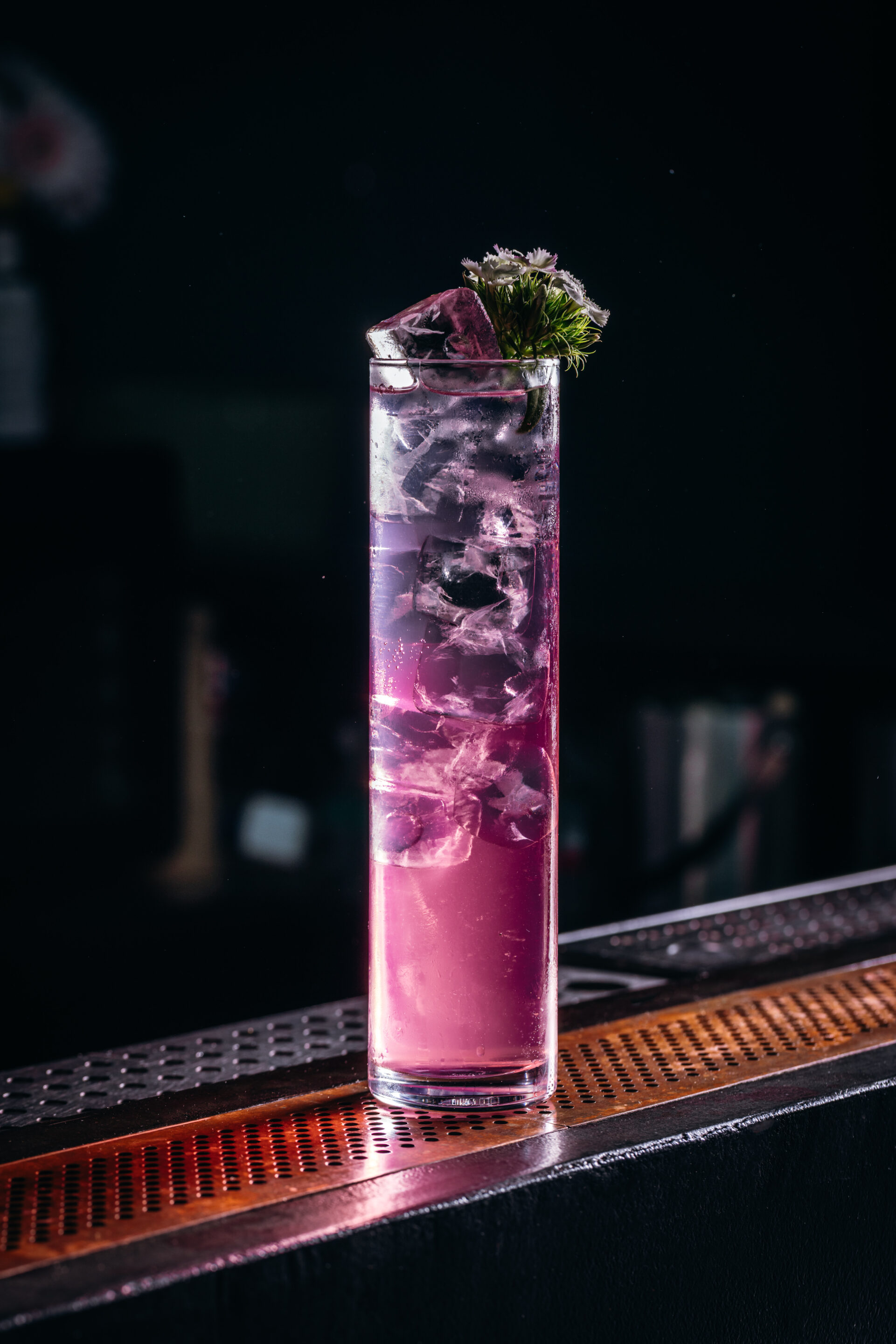 Pour all ingredients into a tumbler filled with a clear ice collins. Stir gently. Top with Cherry blossom soda water. Garnish and serve.